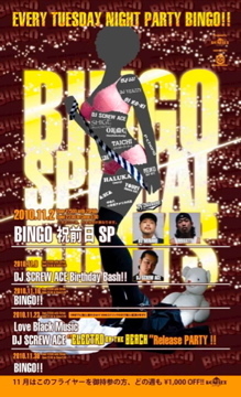 何がちがうって?? その1!! HIP-HOP PARTYが多い中、 BINGOは、もちろんHIP-HOPを軸に MAIN TIMEにはELECTRO、B-MOREなど MAINにして、 BPMを加速して朝までNON STOPでお届け!!