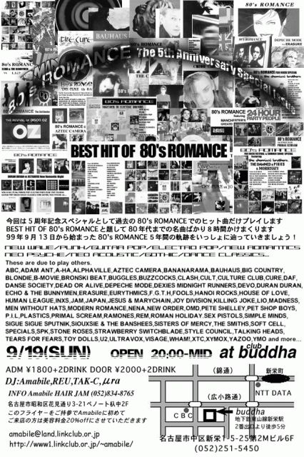 99年9月13日にスタートした80's ROMANCEもおかげさまで丸5年を迎えます。