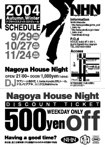 名古屋栄P.O.dのハウスイベント Nagoya House Night (NHN) 今年最後の平日NHNです。 DOOR : 1,000 yen (1 drink) 上のフライヤー500円割引券使えます。(プリント可)
