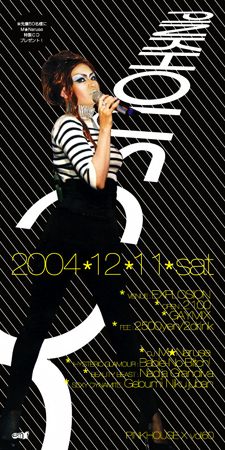 VENUE > EXPLOSION@OSAKA (GAYMIX) OPEN > 21:00 FEE > 2,500 (2drink) DJ > M*NARUSE HYSTERIC GLAMOUR > Babie-No-Bitch! BEAUTY BEAST > Nadja Grandiva SEXY DYNAMITE > Gebumi Nikujuban 北は北海道から南は沖縄まで十数カ所の全国縦断ツアー、 大盛況の5周年パーティ、と2004年も大忙しの ピンクハウスエクスタシー。 今回のゲストは久々来阪の肉襦袢ゲブ美! 抱腹絶倒悶絶必至の怒濤のワン・ウーマン・ショウ! もちろんニュウハウフ修行中のナジャと 元祖お遍路女装バビ江も元気デス。 そして今回のDJ M☆NARU