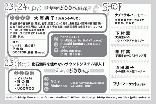 フライヤーの絵も手がけているKLEPTOMANIAC氏の初ライブもあります。お楽しみに。