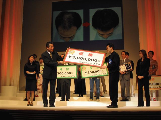 こんにちは、発毛専門リーブ21プレスの 真(平松慎也)です。 弊社イベントのご案内をさせていただきます。 マスコミ関係者限定のご取材お願いになりますが、 どうぞご査収ください。 当日はアッコさんと吉村さんのトークショーも イベント内で予定しております。 以下詳細・・・・ 株式会社毛髪クリニック リーブ21 (代表取締役:岡村勝正、大阪府大阪市中央区、以下リーブ21)は、 「第5回 発毛日本一コンテスト」を、2005年4月11日(月)13時から、東京国際フォーラム ホールCにて開催します。 「第5回 発毛日