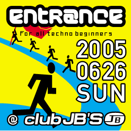 ENTR@NCE DISCO MINIMAL ELECTRO 2005/06/26(SUN) at club JB'S NAGOYA OPEN 21:00 ADV:1500YEN(2drinks) DOOR:1500YEN(1drink) DJs: TETSUWO AKAHORI CA10 MA2HIKO NANNO LIVE PA: SYU-HEN KIKI エントランス、 今週末日曜日開催です。 入り口で前売り取り置きできますので、お気軽に。 よろしくお願いします。