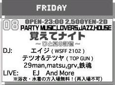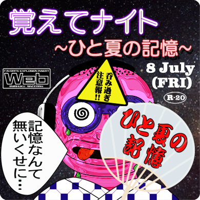 キターーーーーッ!!! あの興奮をもう一度!!!(覚えてないけど。。。) しかも、今回はおつかれSUMMERやからなぁ!!! わかってんだろなぁ?! ヤバイでぇ〜!!! 7月8日(金) 「覚えてナイト〜ひと夏の記憶」@三宿WEB http://www.m-web.tv/schedule7.html 23:00〜朝まで DJs: Eiji テツオ&テツヤ grv matsu 29man 鉄魂 MC: EJ 更なる詳細はこちらを: http://mixi.jp/view_event.pl?id=1331151 注:今回俺は潰れません。