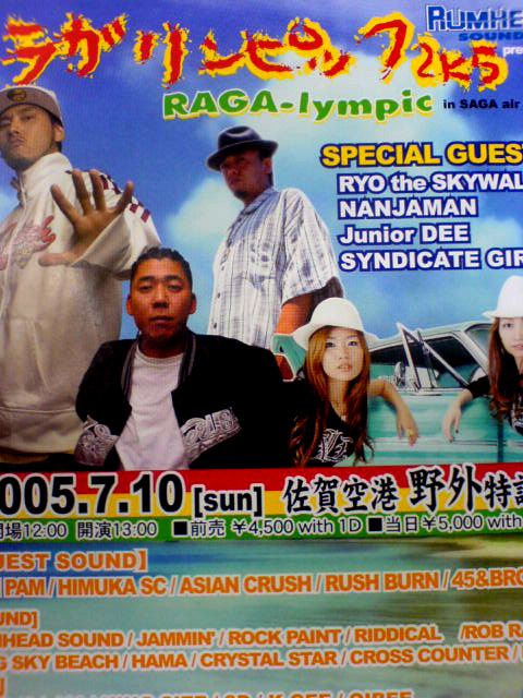 酋長さんが、佐賀にやってきます。 みんなにダンスと笑いを運んできます!!! 《SPECIAL GUEST》 RYO the SKYWALKER NANJAMAN Junior DEE SYNDICATE GIRLS 《GUEST SOUND》 PAM PAM/HIMUKA SC/ASIAN CRUSH/RUSH BURN/45&BROTHERS 《SOUND》 RUMHEAD SOUND/JAMMIN'/ROCK PAINT/RIDDICAL/ROB RACK/KING SKY BEACH/HAMA/CRYSTAL STAR/CROSS COUNTER/POSTON 《DJ》 KING-K/JAI/KING SIZE/3D/K-GEE/OIBEE/一休/D-MAN/RIN/Njapa Japan 《Dancer》 酋長/@to/Donna Charm/Butty q-zee *前売\4500with1D *当日\5000with1D でましたよ!!!!