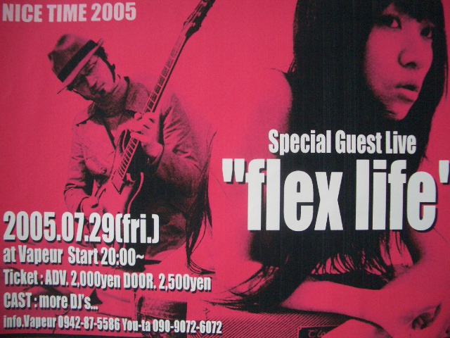 日時-7/29(金)場所-VAPEUR(JR鳥栖駅前) 料金-\2000 時間-8:00〜翌3:00 ジャンル-LIVE,DJ 出演-GUEST:flex life http://www.flexlife.jp/ KEN-1,O-TA,SHO-TARO,BLAST BEATS,U-ZO (allhouseDJ) 問い合わせ-VAPEUR 0942−87-5586まで