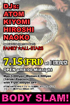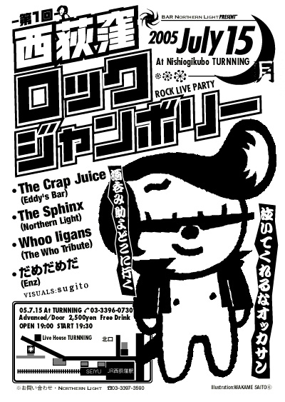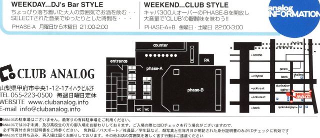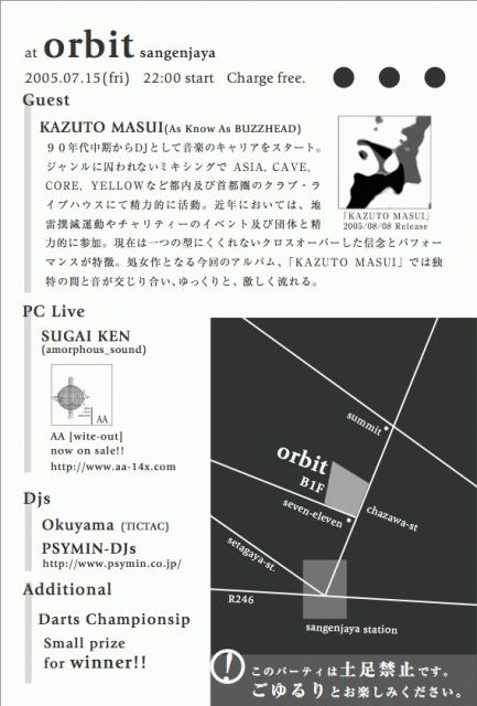 料金: DOOR:\3500-1d, WITH FLYER\3000-1d, CYBERJAPAN メール会員 \1,500/1D.