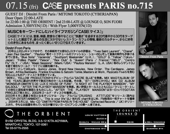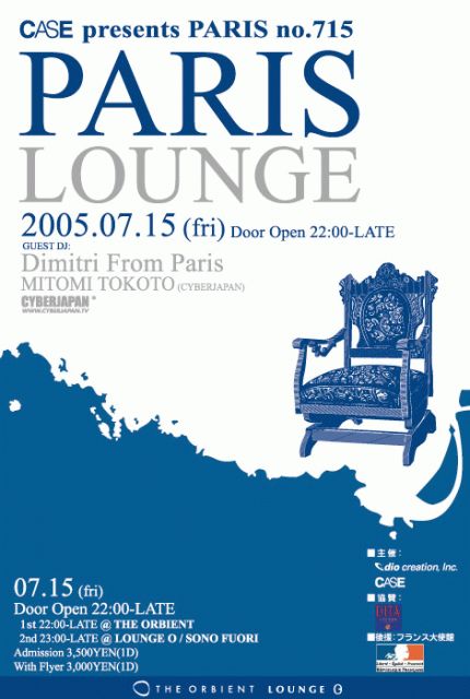 DJ: Dimitri from Paris, MITOMI TOKOTO (CYBERJAPAN), KOJI MUNETSUGU