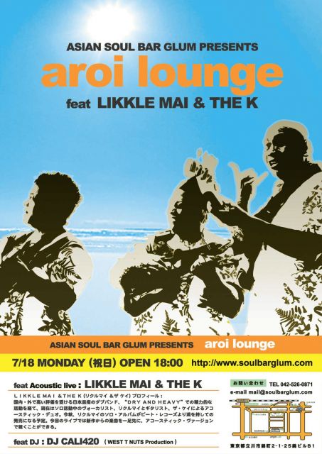 今夏、”路地裏のリゾート”にリニューアルしたグラム。ゆったりとタイ&アジアンフードとお酒を楽しみながらaroi(美味しい)音楽を楽しめるイベント"aroi lounge"が始動。第一弾を飾るのはレゲエ界人気の
