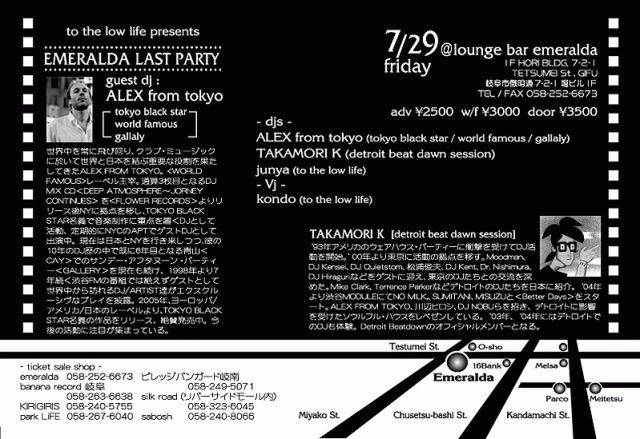 ALEX FROM TOKYO と TAKAMORI K さんがゲストの岐阜でのパーティーです。この2人のタッグはなかなかみれ