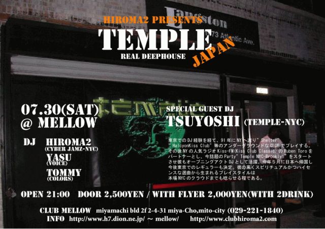 Special Guest DJ TSUYOSHI(TEMPLE-NYC)