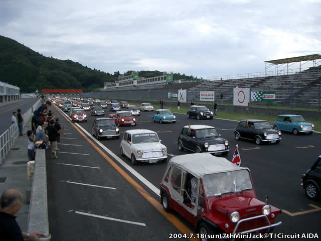 来る7月31日 岡山国際サーキット(旧TIサーキット英田)にて西日本最大のイベント、ミニジャックが行われます。 内容は 1.レース 2.フリマ 3.簡単な催し物(○×クイズ??) 4.エンドラン だったと思います。 レースが主体です。 かなりの台数がこのイベントに集まります。 サーキット周辺にミニの渋滞が出来るくらいです。 出発の時間は深夜の2時〜3時あたりを予定しています。 なんでそんなに早いのかというと… 車のイベントは大体、朝早くからって言うのが相場なんです。 日が昇ると混雑するし、気温が上