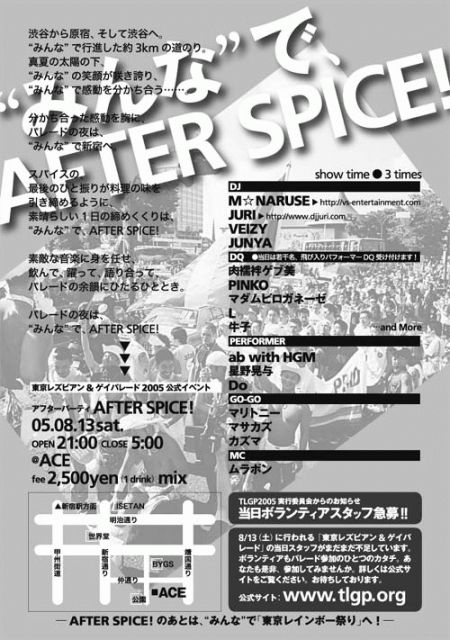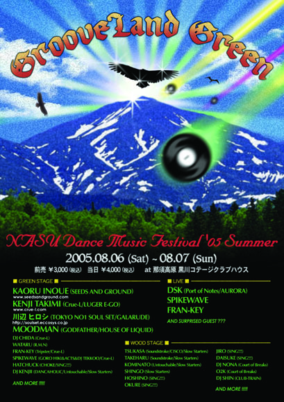 DJは、お馴染みNITE BIRDS(KO-ICHIGO、オカム-D、REMI)、DJ ABE、VJはGRAPH DESIGN STUDIO、command+graphixxx.からmilk隊長が真夏の夜を演出します。
