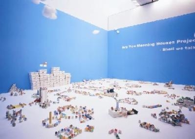 8月の芸術村あーと・ルームは、アーティストの個人性を抑え、Are You Meaning Company(アー・ユー・ミーニング・カンパニー)という会社名を用いて、国内外で活躍している美術家嶺村歩さんを講師に迎え、小さくカラフルな木製の家のモデルを用いたインスタレーション作品をみんなで制作します。