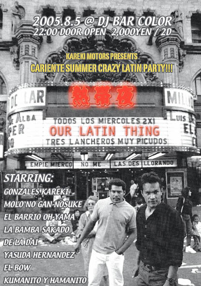 神戸が世界に誇る(!?)パニックパーティー『J P C』。純粋に楽しい時間を過ごしたいという思いからスタートした『J P C』は、素人好きのワタシも玄人好きのアナタもイモアガリのアイツも全ての人が一緒に楽しめるコースを用意しております。第4戦目となる今回は、真夏での開催とあって「懐メロ」改め「夏メロ」大会!!そして、大好評につきパンダとササノハが参戦を表明。あのパンダのパフォーマンスを見逃した残念な方々はこの機会をお見逃し無く。その他にも巷で噂のあのローリー今西のJPC特製『スーパールーズ丼』も堪能出来ます。出演者も続々と増