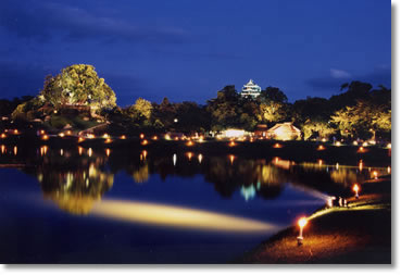 8月11日(木)イベント「岡山幻想庭園」 場所:岡山県 後楽園 http://www.okayama-korakuen.jp/top.cgi 夏の夜の後楽園を楽しんでいただく、夜間特別開園『幻想庭園』の開催日程が決まりました。 今年は、例年のロウソクや照明によるライトアップの他に、茶室などの園内の建物を行灯にみたて、影絵を浮かび上がらせるという演出も。 人気のステージイベントや、お茶会、ビアガーデンもあります。 今年の夏も、ぜひ幻想的な夜の後楽園をお楽しみください。 ◇開催日時 平成17年7月30日(土)〜8月15日(月) 開園時間を午後9