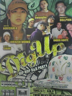 2005/8/11(moku) ADM1500YenWith1D Door2000YenWith1D GuestLive NORISIAM−X FeatSpin GIAN ResidentsDjs DOLLPHIN TANK ゆた Live Gwangho LORINZER WORKS UNDER ROUTE GIN−G Dancer
