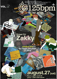 山口からゲストDJとしてZakkyを向かえ,楽しい夜になりますよ。