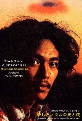 はじめまして。 2005年8月。大阪梅田に新しいラブハウス 『Shangri-La』がオープンします! そのメモリアルなオープン月間に有山さん にもご出演頂きます! クンチョウさんとチュウジさんにもご一緒 してもらってぐるぐる全開! ええ感じの夜になると思います。 遊びに来てください! ----------------------------------------- 8月30日(火) 『新しきソウルの光と道』 LIVE: 有山じゅんじ Quncho&Cyuji A-show THE TWINS DJ: 山口しんじ(ザ・たこさん) KOOL M(the familytone) 開場:19:00 / 開演:19:3