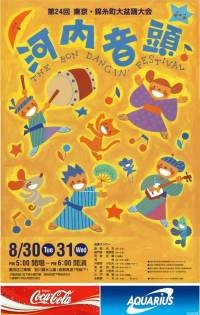 今年も来ました、錦糸町河内音頭! 個人参加、自由参加、いずれもOK。いつ来ても、踊りの輪に入れます。生演奏に生音頭です。 会場:JR、地下鉄半蔵門線錦糸町駅南口、竪川親水公園(首都高速7号線高架下) 日時:8月30日、31日とも17時半開演、21時半終了(31日はちょっと延びるかも…) 出演:鉄砲光丸、河洲輝丸、河洲直美、鳴門家寿美若、鳴門家寿栄美、鳴門家紀久美、司家征嗣、司家令嗣、浅照、井筒家小石丸、.南条武若、天龍小若丸、三門博若、生駒家一夫、虹友美、三条史郎、永田充康 ご参考HP http://www.geocities.jp/iyakorase/k