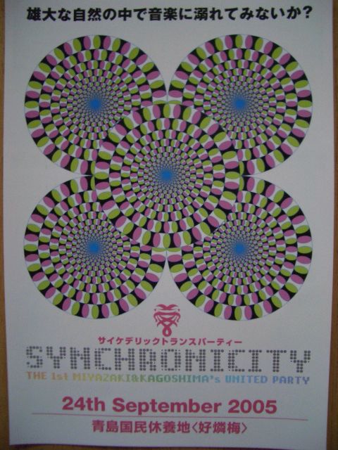 料金;1500+1D(チケットは当日DOORのみ) 場所;http://www.gurunet-miyazaki.com/kankouti/miya-kanko.htm 鹿児島ICから宮崎方面へ上りそのまま一ツ葉有料道路へ。日南青島方面へ向かい青島バイパス横を入る。(旧道から)HIDINGPLACE ZEALの看板を右折、直進。10分でつきます。 バス、電車でお越しの方は子供の国駅でお待ち下さい。送迎いたします。(事前にメールにてお知らせください) テントサイト;無料ですが敷地内に限りがあります。 駐車場;無料ですが限りがあります。 鹿児島、宮崎の同志達が合同でサイケデリックトラ