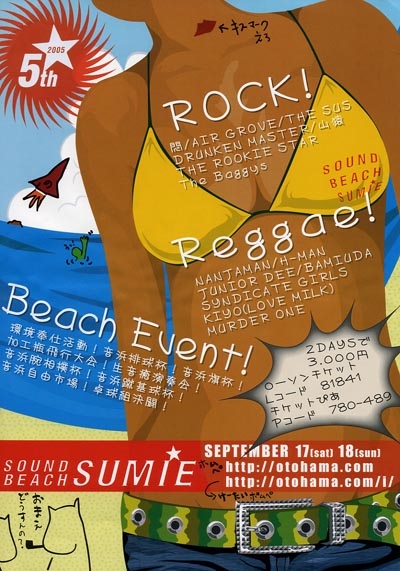サウンドビーチすみえ が今年も開催されます。 詳しくは http://otohama.com/ バザー・コンサート等盛りだくさんの 2DAYS! 私たち「高千穂エイサーシンカゆい」 http://www14.plala.or.jp/YUI/ も18日午後4時30分頃より 出演が決定しました! 夏の最後をサウンドビーチすみえで盛り上がろう! MOOMINも出演するよ!