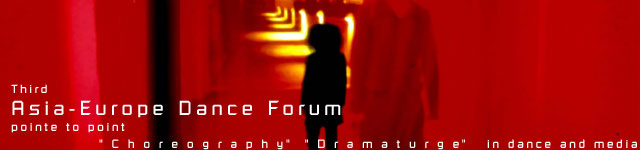 9月13日に『第3回ダンスフォーラム pointe to point』のパフォーマンスを行います。 16カ国ほどからダンサーや振付家が参加し(総勢23名)、ワークショップ形式でダンス&メディア作品を作ります。 最終日13日は、ワークショップで作られた作品を発表します。 詳細 → http://www.dance-media.com/page/dance-forum2005.htm 東京芸術見本市提携事業 → http://www.tpam.or.jp/japanese/work.html アジア欧州基金主催 第3回ダンスフォーラム pointe to point 会場:国際交流基金フォーラム 日時:9月13日 20時開演