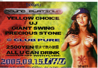 Sound:SOUND PLATINUM YELLOW CHOICE UJ GIANT SWING PRECIOUS STONE \2500-朝まで飲み放題!! \500-Off With Flyer info:06-6214-6600 久々のダンスホールセッションです! メンバーもいいし、楽しみです!