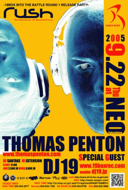あのTHOMAS PENTONとDJ19が東北で唯一福島のNEOでのPLAYが決定しました!! 詳細はrush HPにて! http://www.kit.hi-ho.ne.jp/rush/