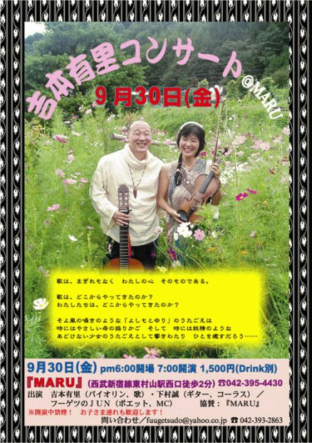 9/30 Fri 19:30~24:00 \1,000(inc 1drink)