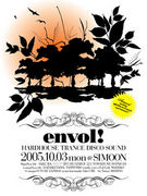 2005 10/3(mon) envol! @ SIMOON open22:00〜 fee 2000/1D w/f 1500/1D ☆Mainfloor☆ HARDHOUSE.HARDTRANCE.TECHNO DJs→SAKURA. ケロンパ. RYUZO. IZAYOI. 223. TOYOIZUMI. Shinichi. ☆Loungefloor☆ DRUM'n'BASS.HOUSE DJs→HATAKEYAMA. yucci. Fal. GOH. MARIKO. TAMTOMO ☆VJs☆ maqui. FUTURE EXPRESS. ryuni. UME. Yuki. katsumaki ☆DQ☆ Natary. MEMEYO 渋谷SIMOONにてお馴染みのenvol!(アンボル)です。 夏も終わり秋がやってきました! 秋の夜長は是非envol!に遊びに来て下さい! 季節を問わずスタッフ一同皆
