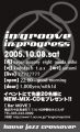 今回はin:progressをテーマに DJ&VJ&ART&LIVEと盛りだくさんのコラボです。。 チョットした異空間で、五感をフル活用。 秋はそんな季節ですよね。 「 in:groove vol.31 [in:progress] 」 - HOUSE,JAZZ,CROSSOVER - 2005.10.08 sat (毎月第2土曜日) @BarMOVE(伊勢佐木町)045-243-0999 地図(http://www11.ocn.ne.jp/~longhi/map.html) Open PM10:00〜Good Morning Entrance charge 1000yen(w/1Drink) 先着20名様に今月から配布の最新MIX-CDをプレゼント! DJ NAGAI(takahong) MARONY
