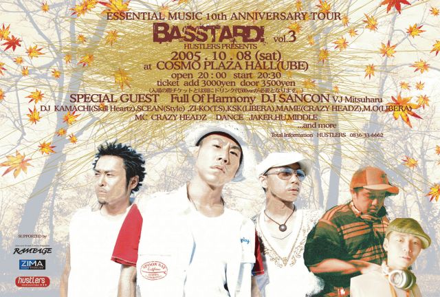 管理者様、告知をさせてください。 ーーーーーーーーーーーーーーーーーーーーーーーーー HUSTLERS PRESENTS 《BASSTARD!》今回は、DJ SANCON率いるESSENTIAL MUSICとのコラボイベント!映画『戦国自衛隊』の主題歌を歌った、F.O.H(Full Of Harmony)、京都を中心に活動するVJの MITUHARUがSPECIAL GUESTとしてやってくる!ヤバイセレクト、ヤバイハーモニー、ヤバイ映像でフロアーをジャックしてくれることは、間違いない!!!CHECK IT UP!! 出演者:DJs KAMACHI(SKILL HEARTS) ZーKO(T.S.C)