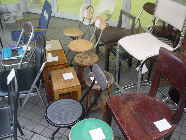 中心商店街から皆で椅子を集めてきました。 これの椅子は、フォーラム会場に利用されます。