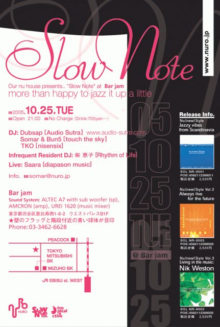 「RIGHT HERE@LOOP」、「SPIN@YELLOW」でのDJ活動を中心に、都内各地で精力的に活動している。