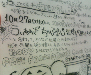 10月27日(木)19時スタート。ラストオーダー23時。 男性2500円 女性1500円 フリーフード・フリードリンクです☆ 私は自分のプロフで着てる服を着て行きますよー。 私の友人の大学生も行きます。 会社員の方や、専門学生の方、 色んな人が来ます。 ゲームやビンゴをしたりしますよー。 楽しみましょう☆