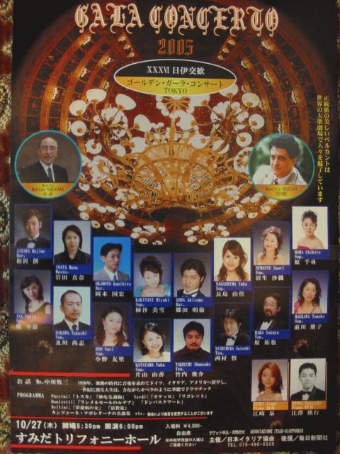 はじめまして。 日本イタリア協会主催・毎日新聞社後援: 『日伊交歓ゴールデン・ガラ・コンサートTOKYO』 に出演致します岡本と申します。 お時間がございましたら、是非御来場戴けませんでしょうか。 どうぞよろしくお願い申し上げます。 ************************************************ 日本イタリア協会主催・毎日新聞社後援: 『日伊交歓ゴールデン・ガラ・コンサートTOKYO』 すみだトリフォニーホール・大ホール 第36回イタリア声楽コンコルソ出場者から選ばれた 15名が出演予定です。 (36回の優勝者、35回の優