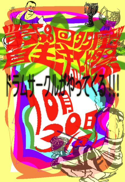 ドラムサークルがやってくる!!! 〜ドラムをたたいて、自分と、日本と、地球をげんきにしよう!〜 第58回自主法政祭多摩地区に、ドラムサークルがやってきます!お一人で、お友達と、ご家族と・・・どなたでもお気軽にご参加ください!! 楽器・リズムとの出会いに新たな世界がひろがるかも・・!? 【ドラムサークルとは?】 世界中のタイコやマラカス等を使った、楽譜も観客もない、全参加型の新しいコミュニケーション・スタイル。タイコをたたいたことのない方も、ファシリテーター(案内役)のガイドにより、どなたでも安心して、その