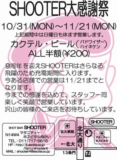 ■日時・・・10.31(月)18;00 OPEN ■場所・・・陰陽 NEGA POSI http://web.kyoto-inet.or.jp/people/negaposi/ 地下鉄丸太町駅下車徒歩5分 ■チケット・前売り1500円・当日2000円 ■ゲスト・・東京よりトリックスターブルー http://mixi.jp/show_friend.pl?id=390211 関西語りべ・・木村三郎 http://blog.drecom.jp/kimura36/ すでに予約が殺到していますのでお早めに・・・ 予約は私【やんちゃなリーン】にメッセにて人数を 明記の上・・参加者全員の氏名(ニック
