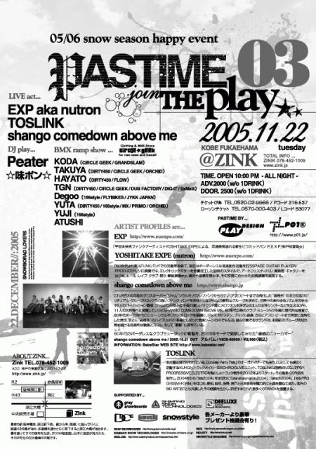 皆さんお疲れ様です。 待望の詳細発表です。 楽しいパーティに出来るよう努力致しますので、 皆さんご意見是非ともよろしくです。 ご協力頂ける方も引き続き募集致しておりますので、 遠慮なくご一報下さいね! “t.k.night” 〜祝“小室哲哉”47歳!BIRTHDAY TIME TO COUNT DOWN!〜 日時:11/26(土)23:00〜All Night! Dj:Jiro(YOUNG JUMP)/清水(吉本興業)/ オカタツヤ(J-将軍)/むらい。/eye/魅惑のクニオ♂etc. Vj:なべなべ。 場所:池袋Live Inn Rosa 03-5956-3463 住所:豊島区西池袋1-37-12ロサ会館B2 http://www.l