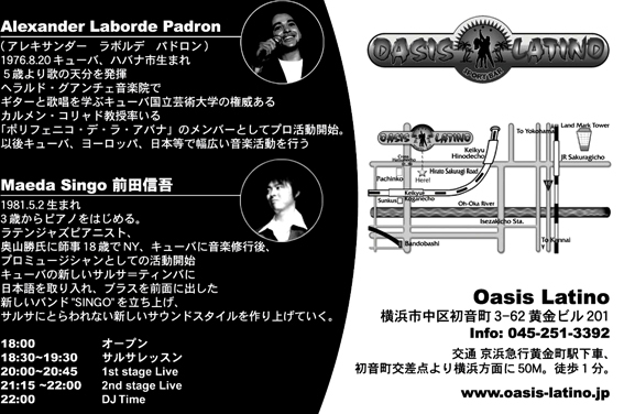 Special Guestはキューバから、今大人気の アレキサンダー・ラボルデ(Alexander Laborde)さん。彼の甘い歌声とギターで、横浜の夜を魅了します!