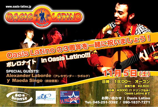 サルサバー オアシスラティーノも、おかげさまで今年の11月で3周年を迎えようとしています。日頃お世話になっている皆様に感謝の気持ちをこめて、3周年記念パーティを開催させて頂く事になりました。