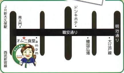 ----- オフ会詳細 日時:11月11日(金) 18:30 集合場所:新大久保駅 北口集合    18:45まで待ってお店に移動    遅れた方は直接お店に来て下さい 場所:オムニ食堂 本店 歌舞伎町店 電話:03-3207-2211 住所:〒160-0021    東京都新宿区歌舞伎町2-42-13 東広ビル 1F    (新宿ハローワーク(職安)すぐ近く) HP:http://www.omuni.net/ goo地図:http://map.goo.ne.jp/map.php?MAP=E139.42.17.380N35.41.40.810&ZM=11&SZ=1 会費:一人4500円位 備考:コミュのメンバー以外でも参加可    お友達や知り合いの同