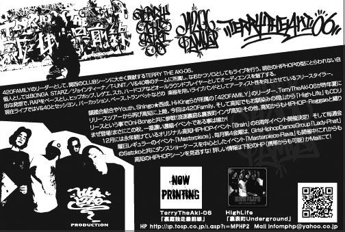 Aki-06アルバム「裏庭独走最前線」リリースツアーin高知 at.LoveJmaican 11.12(sat)22:00〜start ADM:1,000yen フライヤー持参で500yenOFFの1,000yen Guest:Aki-06(大阪),HIGHLIFE(岡山)ONI-BONG(岡山) Show:高知重要FAKTAZ,Kyoncee,Hasq,Hi-Low,Answer,Maki, DJ:StoneMason,Calcutta,Bikki,Bea,Kazuki,Kyo, 韻踏合組合やYouth、Shingo★西成、Hi-Kingらが所属の「420FAMILY」のリーダー、TerryTheAki-06が昨年夏にリリースツアーから再び高知に上陸。今回は420Family、そして高知でもお馴染みの岡山から「High-Life」もCDリリ