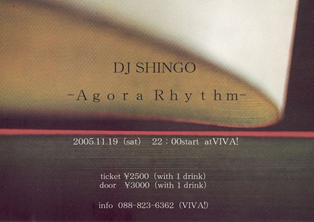※告知失礼致します。 11/19(sat) at VIVA! open 22:00〜 DJ SHINGO add ticket ¥2500/1D door ¥3000/1D info VIVA!(088-823-6362)