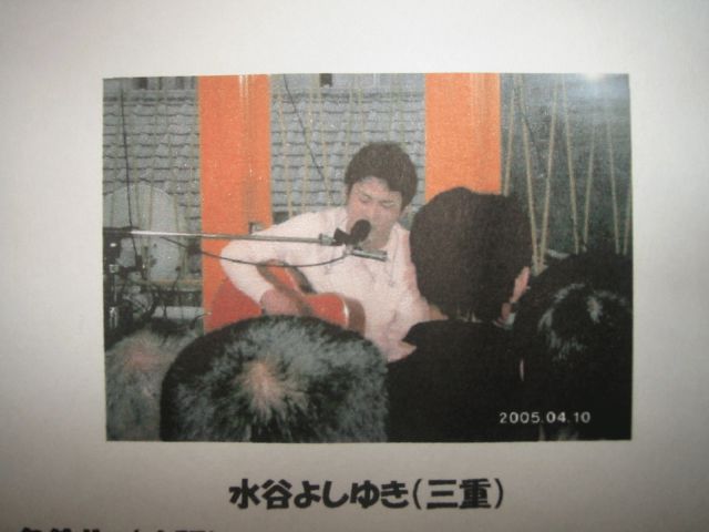 ヒステリックにて2005年4月に第1弾を成功させ、続いて第2弾決定! きっと、心に響く魂の唄を届けてくれる事でしょう。 是非、足を御運び下さい。 *長渕 つよし風の弾き語りです。 *第1弾は60名ほどの方に来て頂き、大成功! 日時 2005年11月6日(日) 場所 ヒステリック 時間 5:00スタート チケット ¥2500(1ドリンク、フリーフード付) お問い合わせ 水谷よしゆき yoppe-@m3.cty-net.ne.jp ヒステリック (0593)51−5250 *写真は第1弾 ヒステ