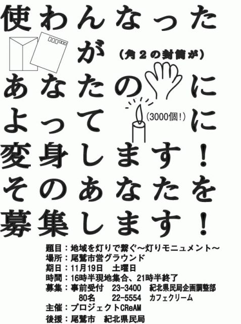 海月です。 熊野古道月間に関わったプロジェクトCReAM企画の第2弾です。 80名の募集をしていますので、よろしくご参加ください。