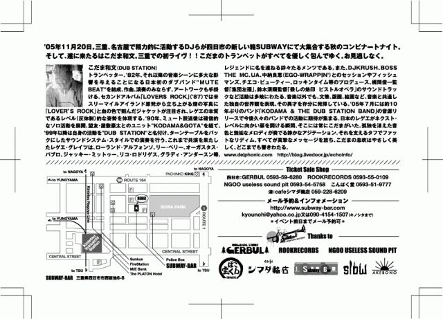 "scratch'n enough" @SUBWAY BAR ,yokkaichi nisisinchi6-8 LIVE こだま和文 fromDUB STATION ★日曜日のイベントの為オールナイトではございませんので ご注意を ★アーティスト同行のため、この日はslowはお休みさせて頂きます。ごめんなさい。
