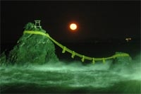 夏至のころ、夫婦岩の間から昇る朝日は有名ですが、 10〜2月の満月の頃には、夫婦岩の間から満月が 出るそうです。 11月は16日(水)〜18日(金)が満月の夜。 夫婦岩で月を愛でるのもオツなものです。 ■満月の見頃 10月19日(18:11)、20日(18:50) 11月16日(16:44)、17日(17:26)、18日(18:15) 12月16日(16:58)、17日(17:56)、18日(18:56) 1月14日(16:46)、15日(17:46)、16日(18:46) 2月12日(16:38)、13日(17:36) ※( )内は月の出のおよその時刻です。 ■問い合わせ 二見浦観光協会