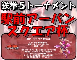 来る11/23(木)【駅前アーバンスクエア 鉄拳5大会】 を開催いたします。 「鉄拳5」稼動から一周年を迎える11月。 シングルトーナメント&2on2のチームトーナメント戦を開催!! 稼動から大会も5回目を迎えました。 大分、鹿児島、熊本や県北との交流も深まり鉄拳5.1を締めくくる 盛大な大会となることと思います。 多数のプレイヤーに参加していただくために、 時間帯を二つに分けてのイベントにします。 初心者の方から上級者の方まで楽しめるように こころばかりですが、参加賞をご用意いたしております。 多数の参加おまちしており